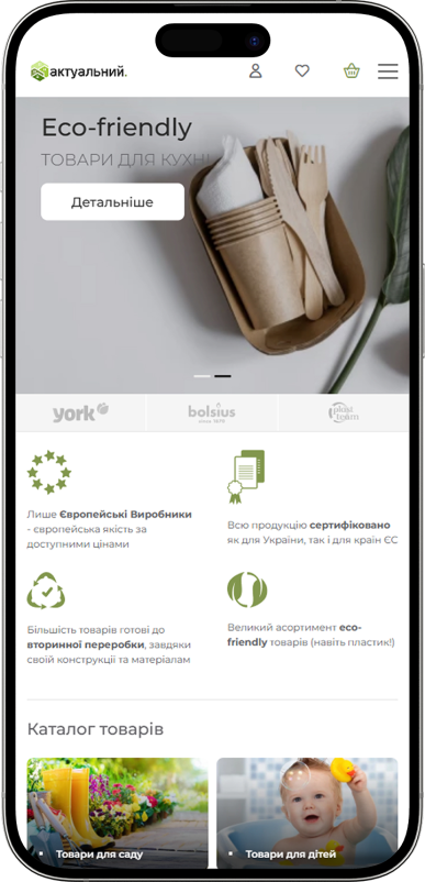 Ключевой задачей проекта стало создание функционального и интуитивно понятного интернет-магазина для крупного дистрибьютора товаров для дома. Основной акцент был сделан на сочетании экологичности продукции с минималистичным и элегантным дизайном, что определило общую концепцию визуальной подачи и структуры сайта. В результате был реализован современный онлайн-магазин товаров для дома с логичной навигацией, удобным пользовательским сценарием и привлекательной презентацией ассортимента, выгодно выделяющийся среди конкурентов.
