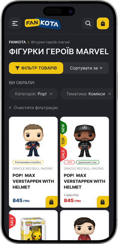 Fankota — інтернет-магазин ексклюзивних фігурок. Це сучасний e-commerce проєкт із динамічним та яскравим дизайном, який повністю відображає тематику магазину й створює зручний користувацький досвід. Сайт реалізований на фреймворку Laravel із використанням CMS Fenix Engine, що дозволило досягти оптимального поєднання унікального стилю в ніші та перевірених інструментів електронної комерції.